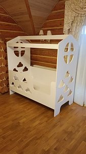• Детская кроватка Домик Облачко подойдет ребенку от 2х лет до 8 лет. Это уютный, волшебный, безопасный собственный Домик для вашего ребенка. Защитные бортики со всех сторон уберегут вашего ребенка от падения с кровати во время сна. Прочная устойчивая конструкция с реечным основанием выполнена из массива сосны, что в совокупности с матрасом образует идеальное спальное место для растущего ребенка.