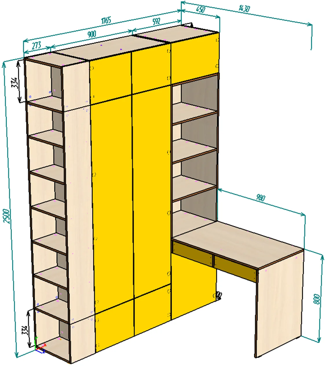 ---- Нестандарт Стол письменный со стеллажом и шкафом 1765*2500