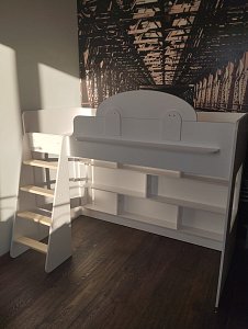 Выбирали кровать для сына, знаем, что здесь качество мебели отличное, друзья рекомендовали, остановились на этом модели. Тут не только кроватка, но еще и целый игровой комплекс, и лестница есть, и место для игр, и полочки для игрушек. Доставили быстро, все собрали, она действительно классно выглядит и качество превосходное, очень прочная и добротная.
