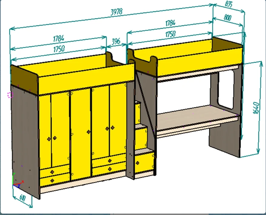 Нестандарт Двухъярусная кровать Л-CE606-604