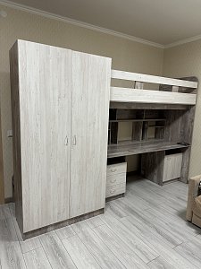 Очень удобный комплект. Нам важно было, чтобы стол был отдельно, а не вместе с кроватью, потому что планируем в дальнейшем сделать перестановку. Когда оформляли заказ, сразу нас проконсультировали, и мы добавили матрас. Уже через неделю мебель нам привезли, а на следующий день сборщик всё собрал. Спасибо!