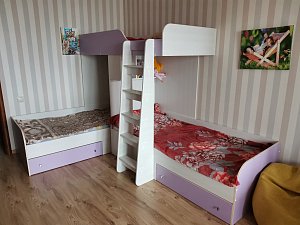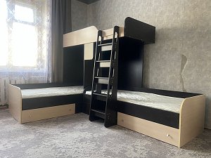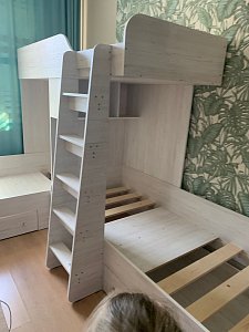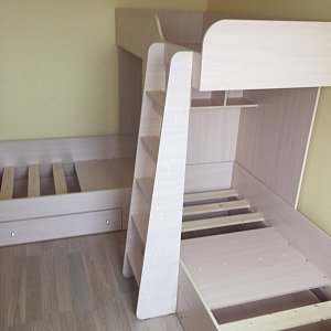 Отличная компактная,качественная кровать с полноценным спальным местом для всех деток.Шикарный выбор оттенков-мы выбрали Вендирберг.ЛДСП качественное,фурнитура вся в наличии,хорошо упаковано,оперативно обработан заказ,быстрая доставка-ПЭКом дней 5.