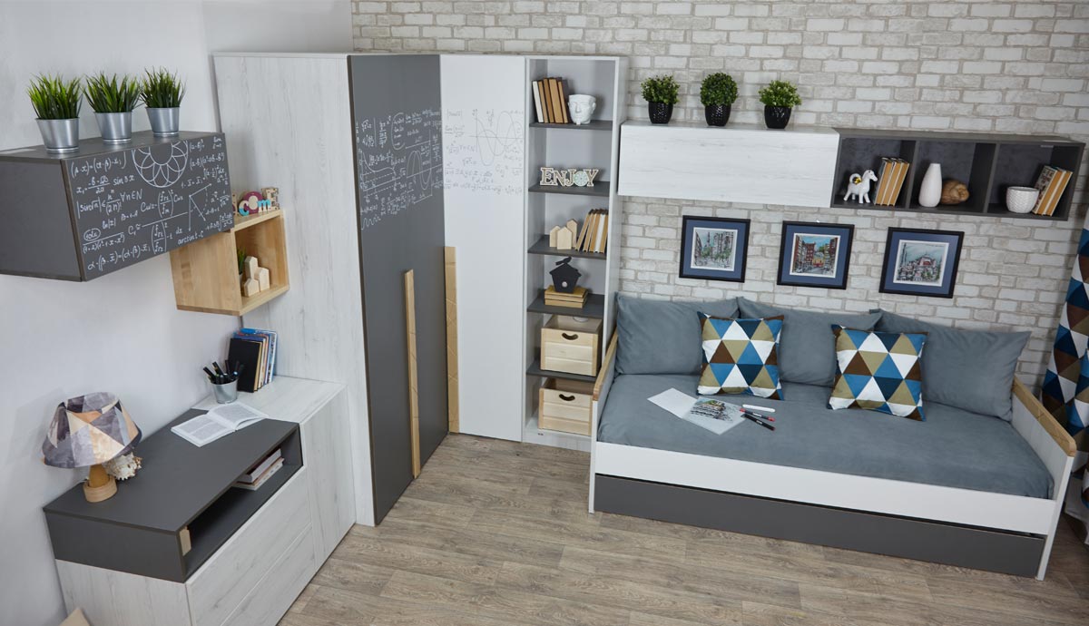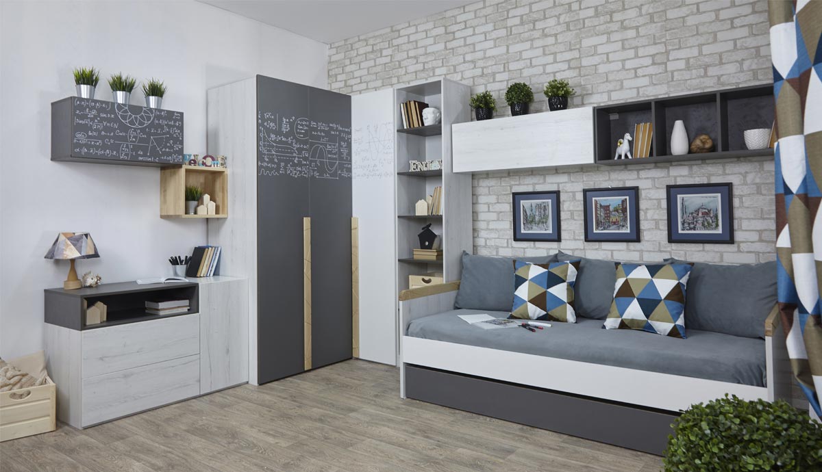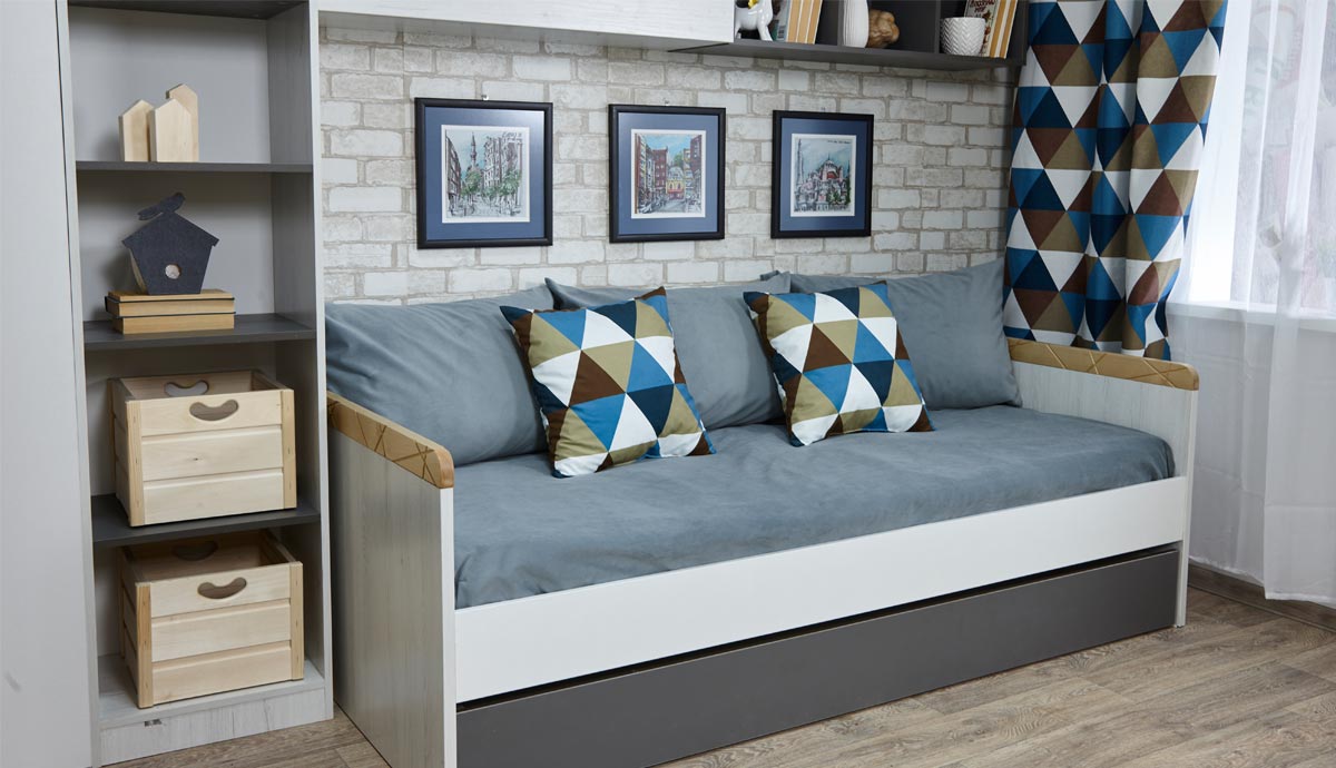 Кровать малая с дополнительным спальным местом «Ньютон Грэй»