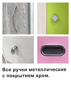 Мебель изготовлена из ламинированного ДСП, с использованием кромки АБС, что позволяет продлить срок службы изделия и сохранить внешний вид. Отсутствие острых углов является самым главным критерием травмобезопастности детей.