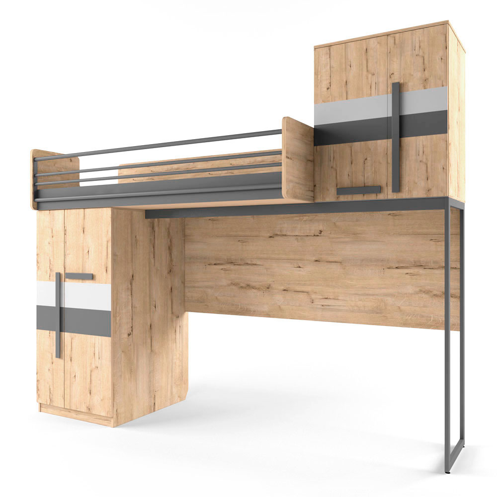 Кровать-чердак со шкафом внизу. Прочная конструкция модуля достигается за счет металлокаркаса.