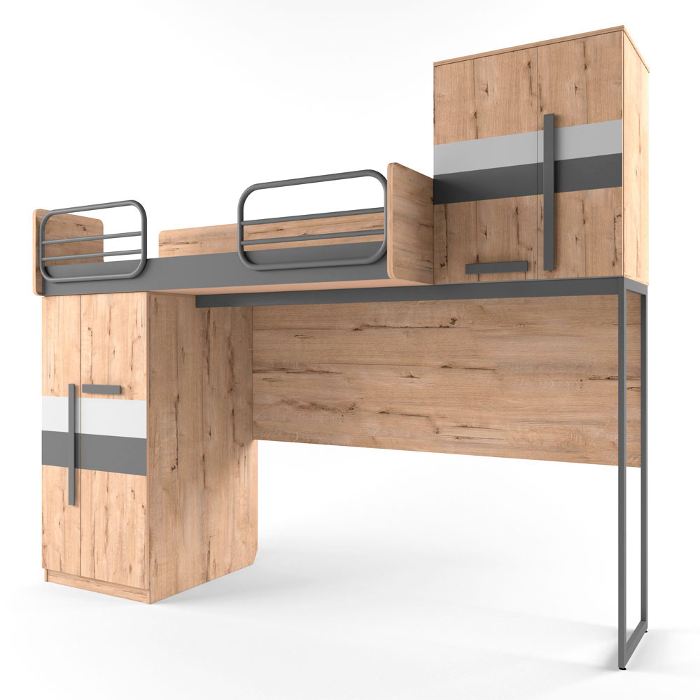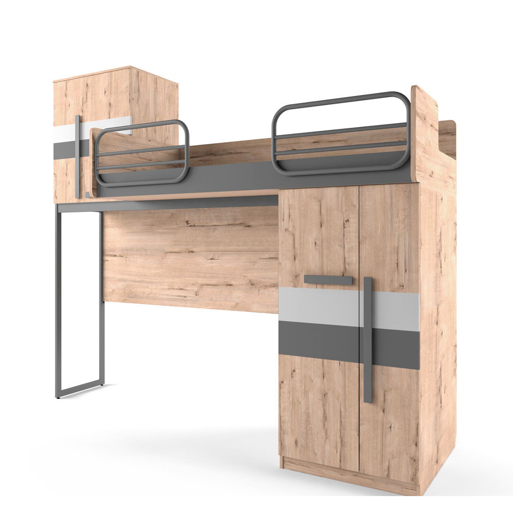 Кровать-чердак со шкафом внизу. Прочная конструкция модуля достигается за счет металлокаркаса.