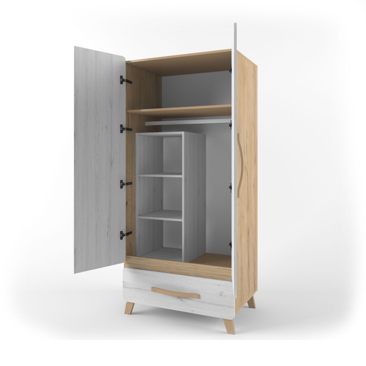 При необходимости, дополнительно комплектуется стеллажом в шкаф - с полками.