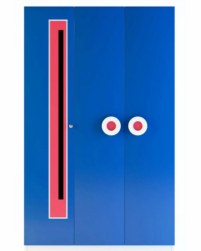 Шкаф 3-х дверный Ливио Fema Baby - яркий и функциональный одежный шкаф с узким зеркалом, полками для белья и вместительным отделением для верхней одежды и костюмов. Идеально впишется в детскую как маленького мальчика, так и подростка. Особое очарование модели придают большие круглые ручки с яркой серединкой. Шкаф может использоваться самостоятельно или с другой мебелью серии Ливио.