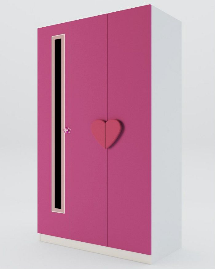 Шкаф 3-х дверный Виолетта Fema Baby - яркий и функциональный одежный шкаф с узким зеркалом, полками для белья и вместительным отделением для верхней одежды и костюмов. Идеально впишется в детскую как маленькой девочки, так и подростка. Особое очарование модели придают фигурные ручки, выполненные в форме большого сердца и маленького цветка. Шкаф может использоваться самостоятельно или с другой мебелью серии Виолетта.