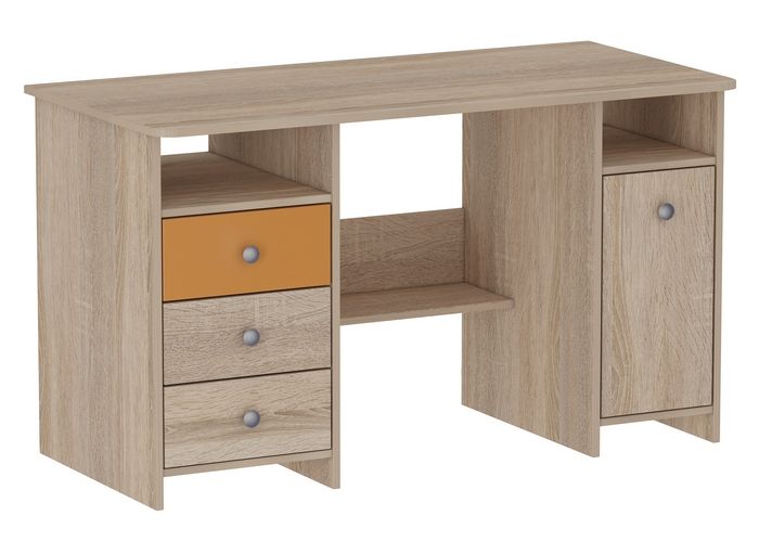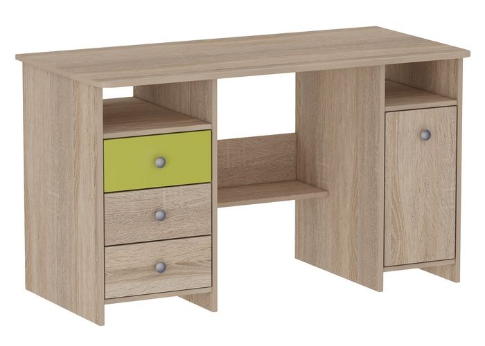 Описание: Стол письменный СК-9 «Ультра» — двухтумбовый. Стол примечателен компактными размерами с широкой удобной рабочей поверхностью для письма и работы на компьютере. Внизу слева расположены три выдживных ящик на роликовых направляющих и компактная ниша под бумаги, документы, журналы, тетради и учебники непосредственно под столешницей. Посередине под столешницей вертикальная полка для документов, системного блока, принтера и прочего. Справа- вместительная тумба. Стол предназначен для письма и работы на компьютере в домашних условиях и офисе.