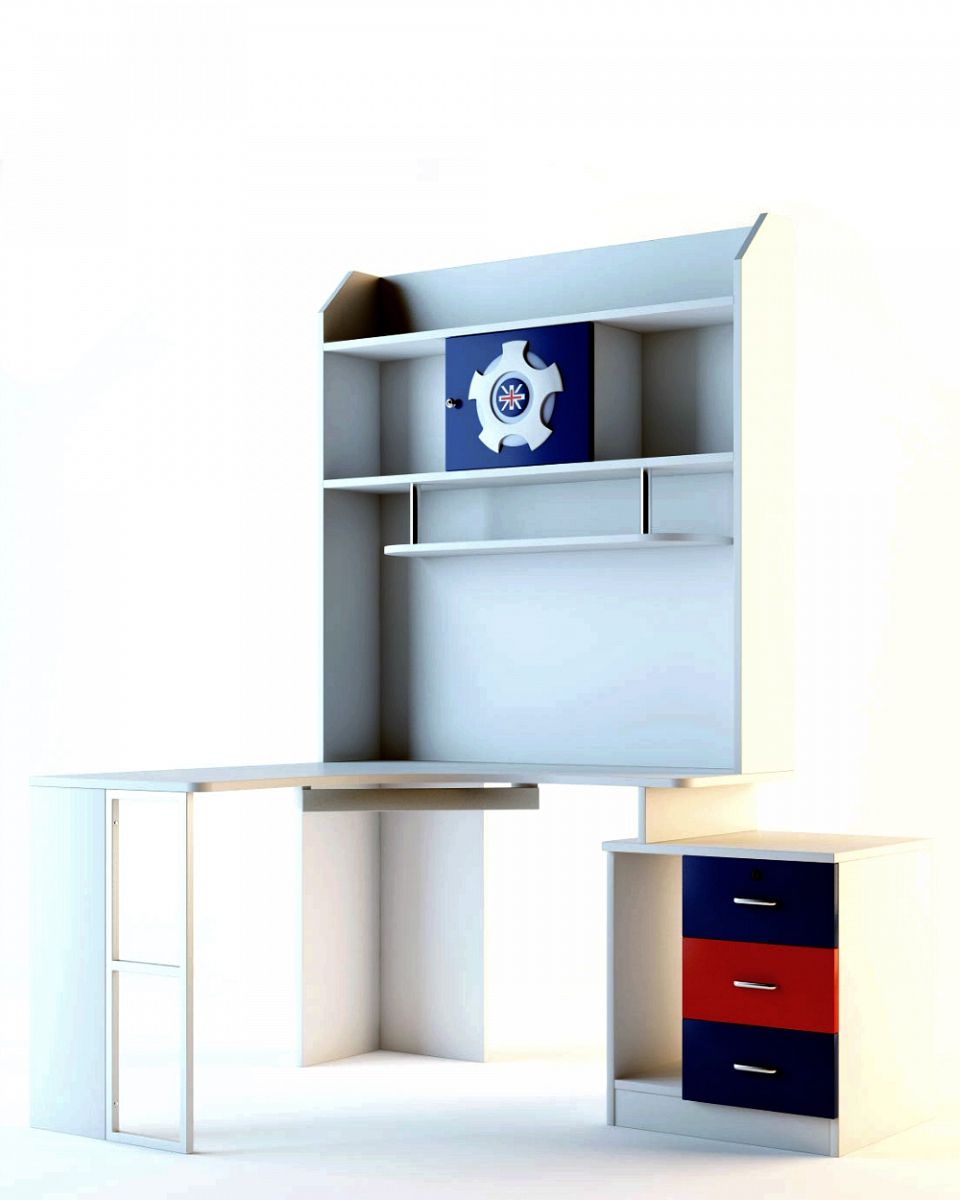 ОписаниеСтол компьютерный угловой Ливио Fema Baby - универсальный и стильный модульный блок, который позволит вашему ребенку разместить все необходимое для учебы. Комплекс состоит из углового стола с тумбой и ящиками и надстройки-сталлажа, снабженного полками и шкафчиком. Модель декорирована накладкой-медалью и окрашена в яркие цвета. Стол может использоваться самостоятельно или же с другой мебелью серии Ливио.
