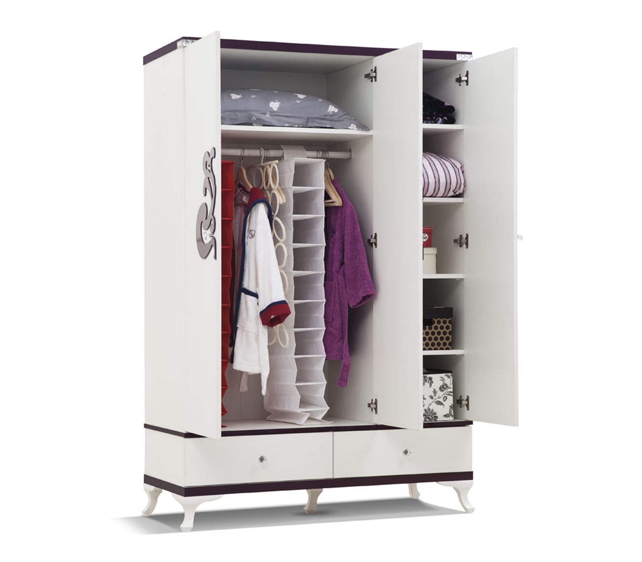 ОписаниеБольшой 3-х дверный шкаф Calimera Cute C101 необычайно удобное изделие, обладающее насыщенными и приятными цветами, ярким и оригинальным декором и лаконичной функциональностью!