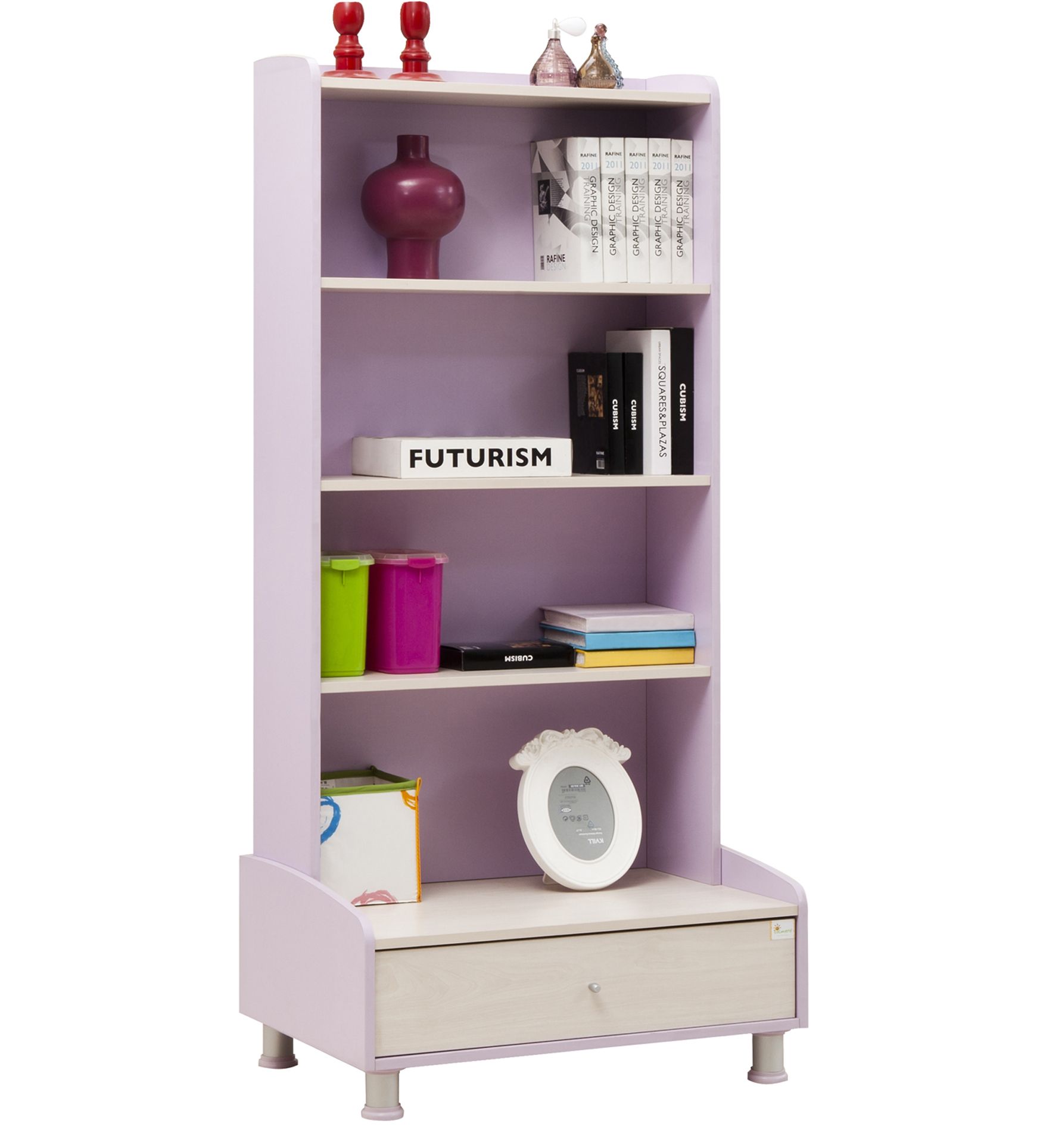 Стеллаж оснащен тремя полками и выдвижным ящиком. красивый розовый цвет изделия добавит комнате романтики и нежности.