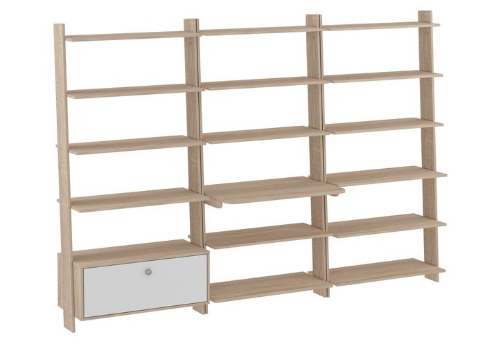 Стеллажная системы «Ультра» выполнена из ЛДСП текстура «Дуб Сонома», что позволяет ей отлично компановаться со всей мебелью серии «Ультра».