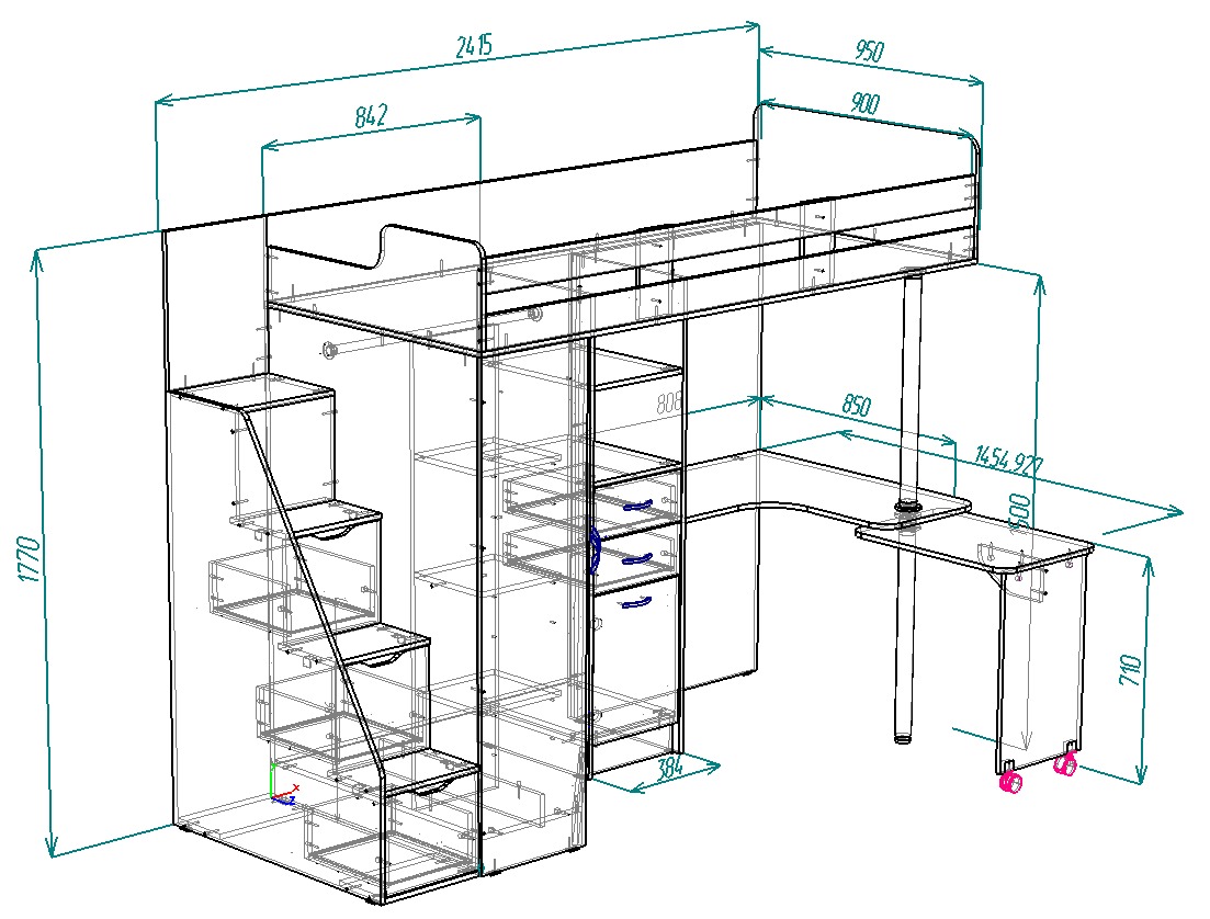 ----Нестандарт Кровать чердак Мийа 90х200 без пирилл и с изменениями