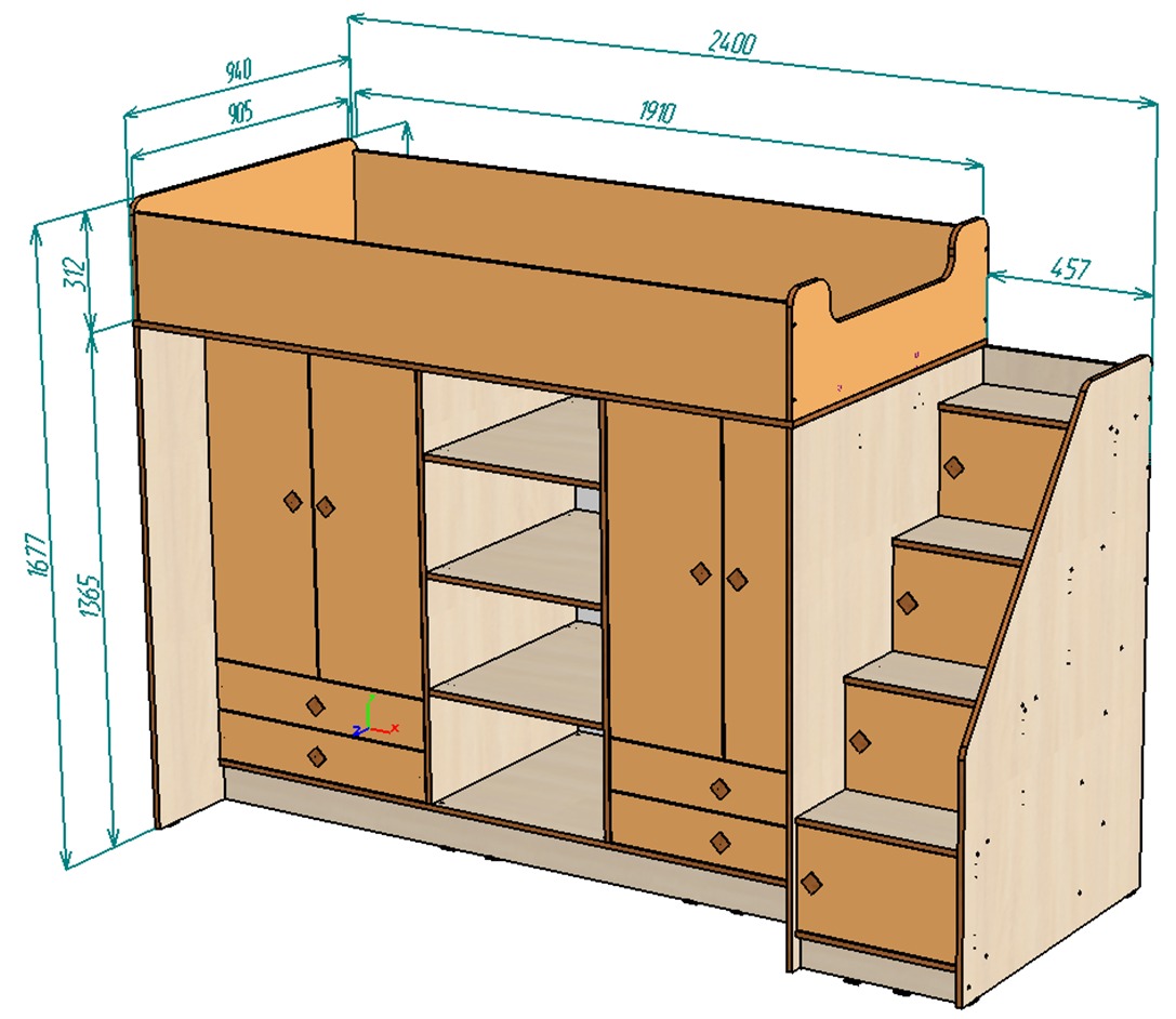 ОписаниеНестандарт Кровать чердак Л-Е604.3