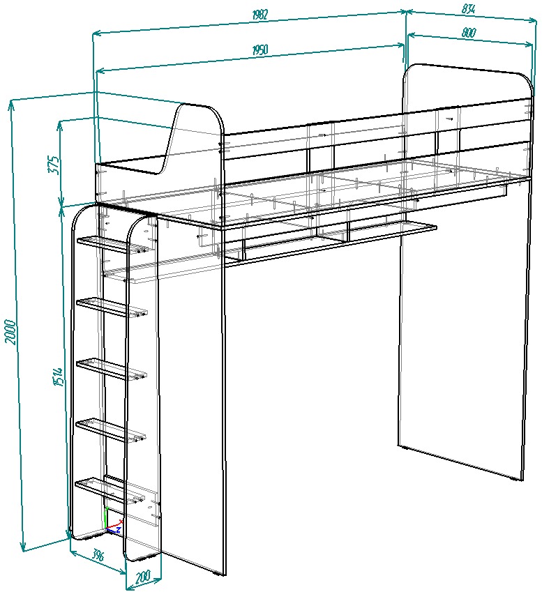 -Нестандарт Кровать чердак Юта с навесной лестницей 80х195