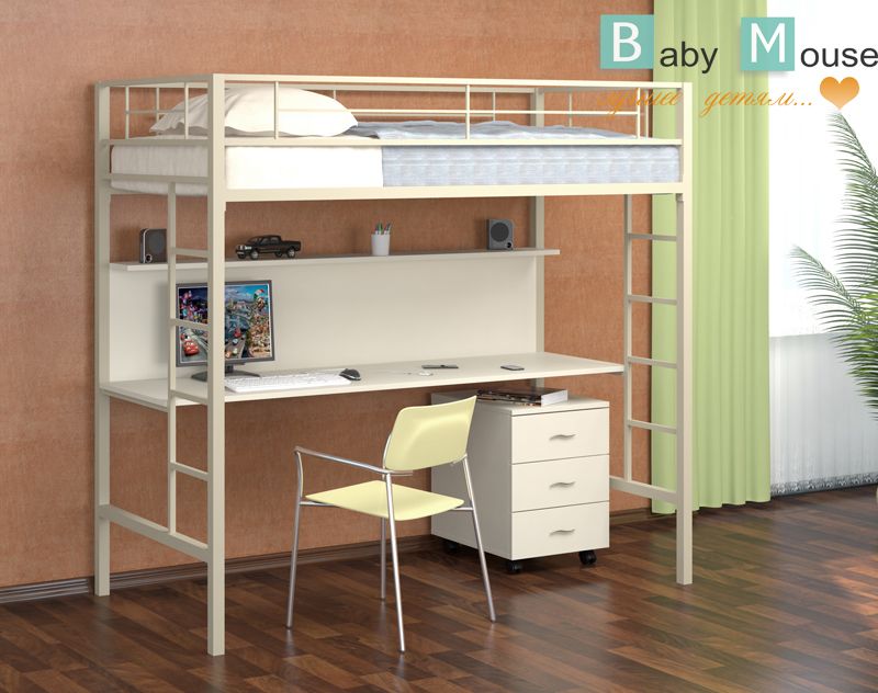 -Стол и полка под кроватью выполнены из ДСП;