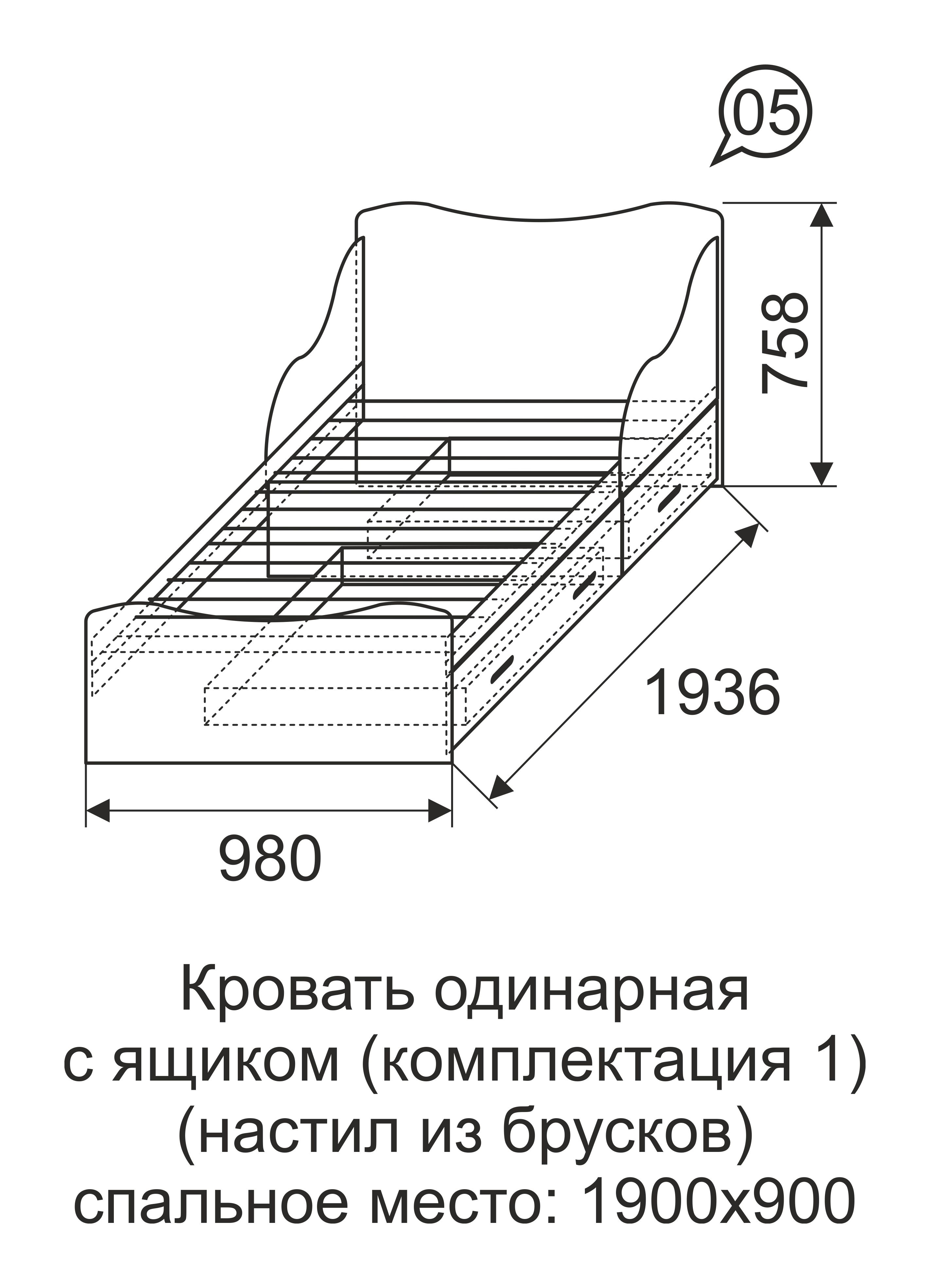 Кровать 900 мод.5 Принцесса с ящиками