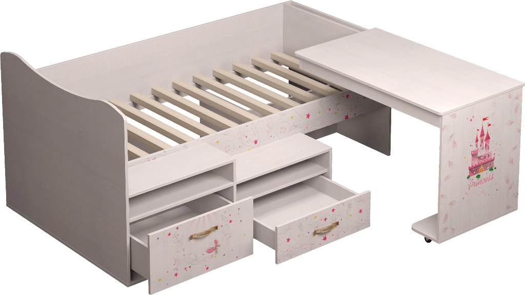 ОписаниеНовая коллекция детской мебели выполнена в сказочном стиле. Минимальный состав модулей достаточен для обстановки детской комнаты. Направляющие шариковые полного выдвижения, петли с доводчиками. Комплекс универсальный позволяет экономить пространство комнаты за счет выдвижного рабочего места.