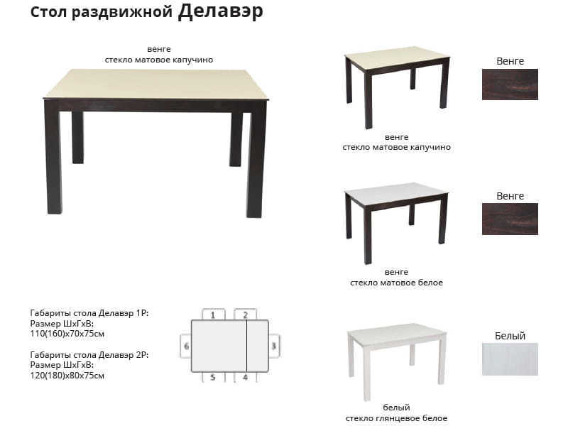 ОписаниеСтол Дэлавэр, выполнен в современном минималистичном стиле. Стол раздвижной конструкции, боковая ламинированная вставка хранится внутри стола. Материалы столешницы - ЛДСП + закаленное стекло, подстолье - массив бука в разных покрасках. В белом цвете каркаса, используется глянцевое стекло.