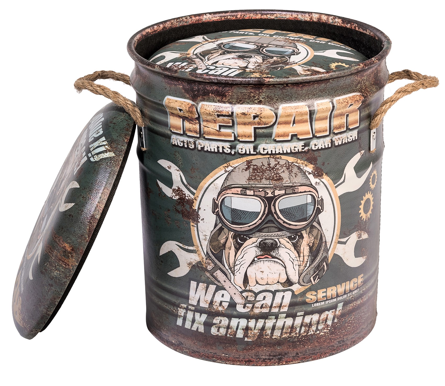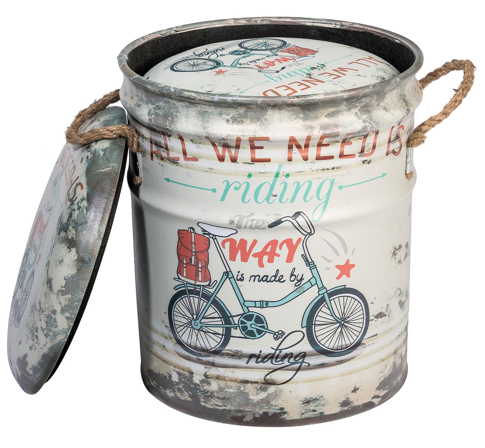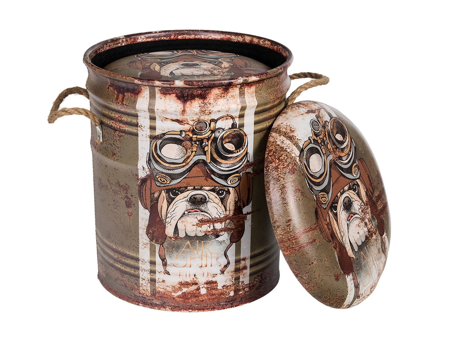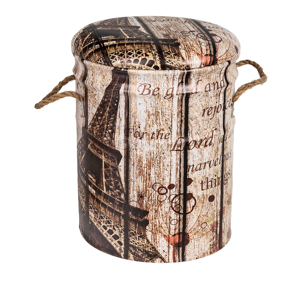 ОписаниеОбивка пуфа — экокожа. Под сидением находится вместительный внутренний ящик. Пуфик оснащен ручками из пеньковой веревки.
