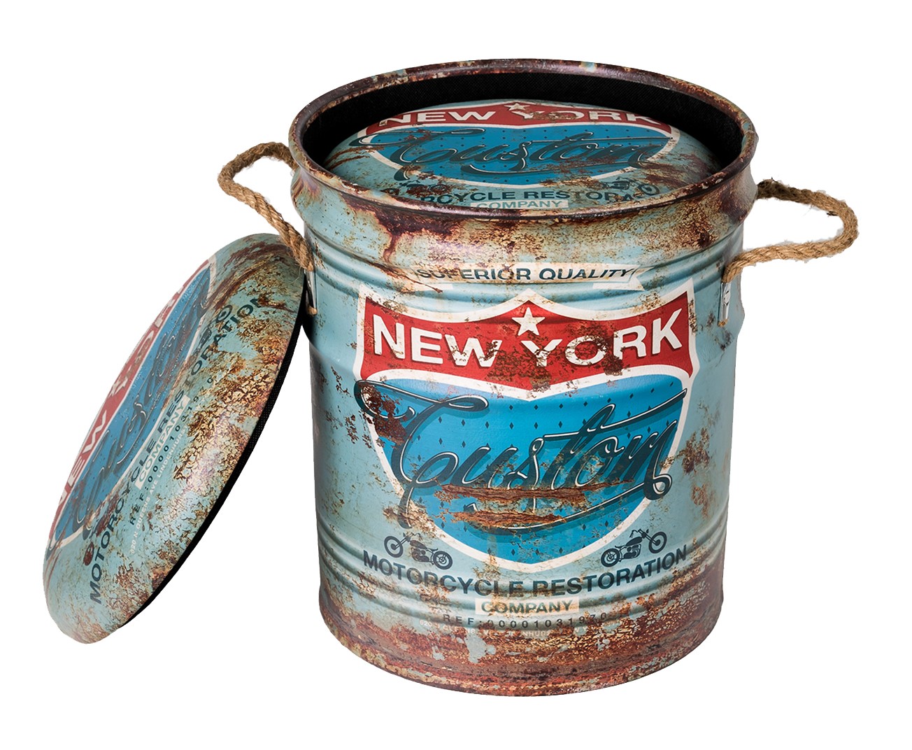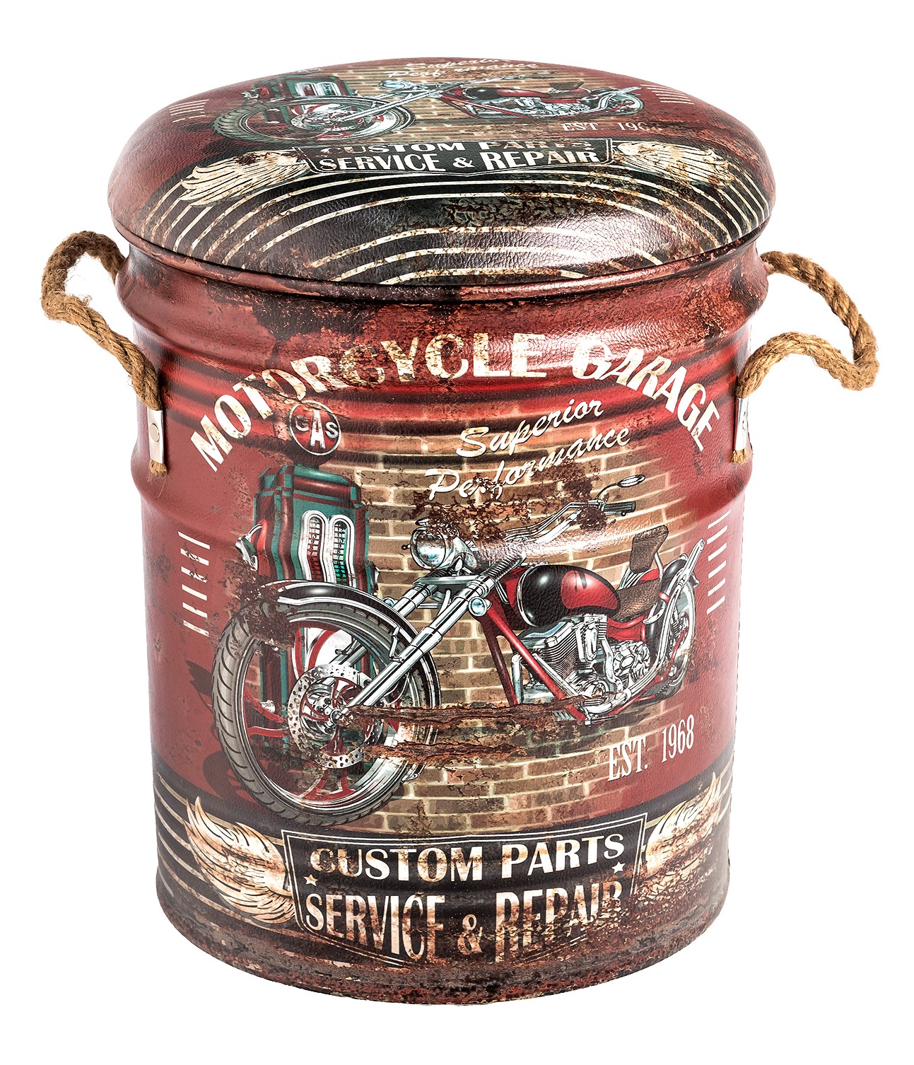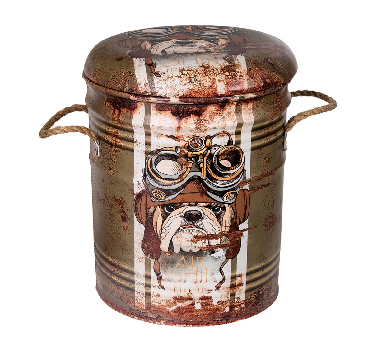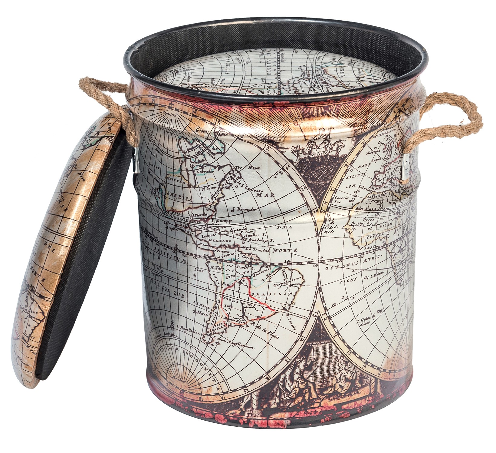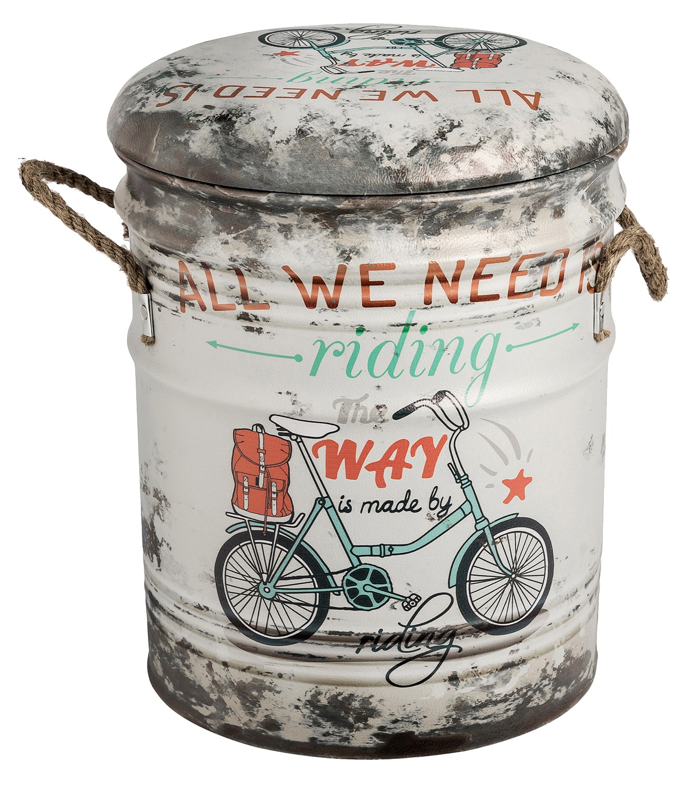 ОписаниеОбивка пуфа — экокожа. Под сидением находится вместительный внутренний ящик. Пуфик оснащен ручками из пеньковой веревки.