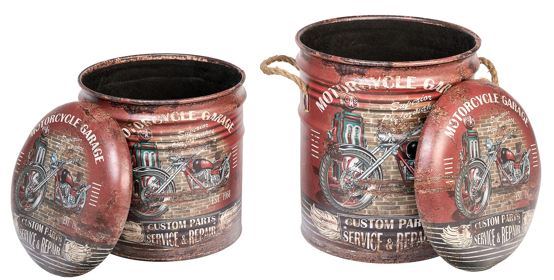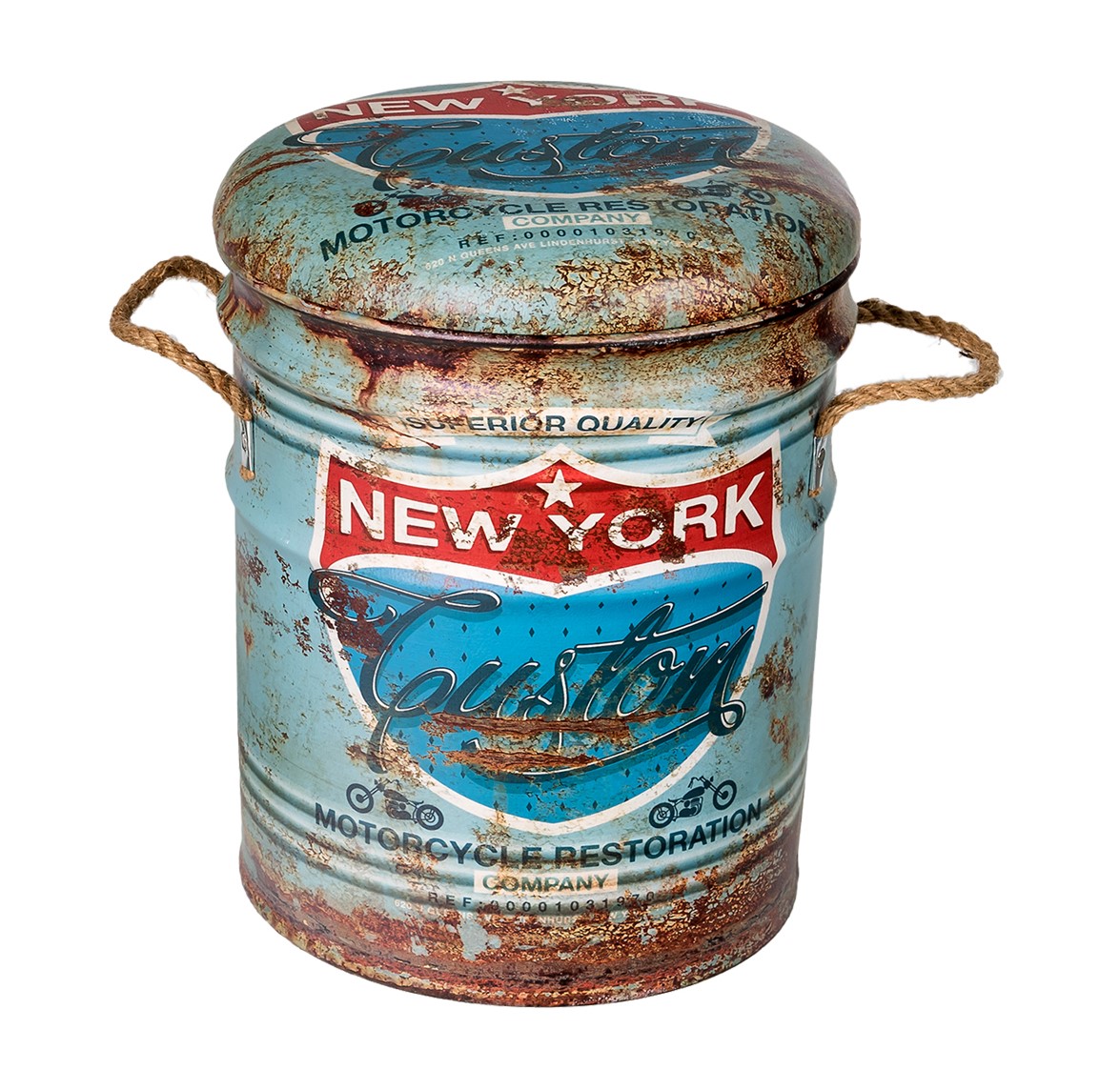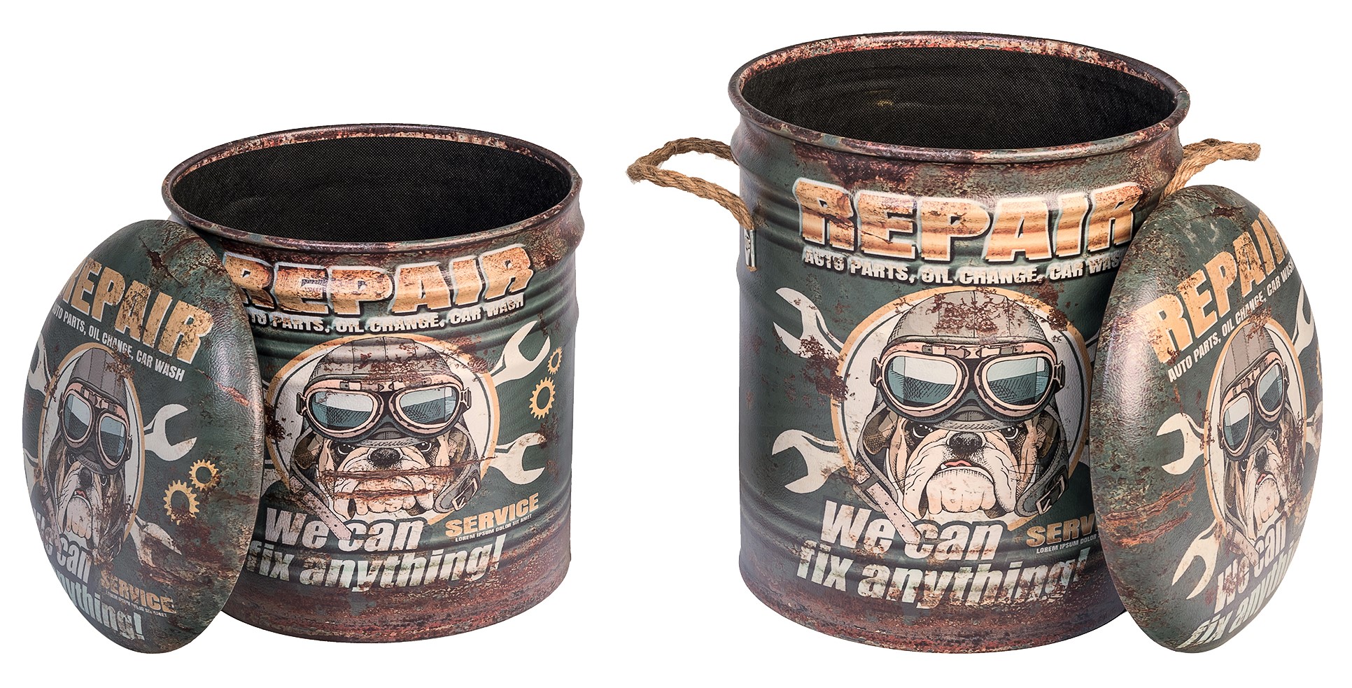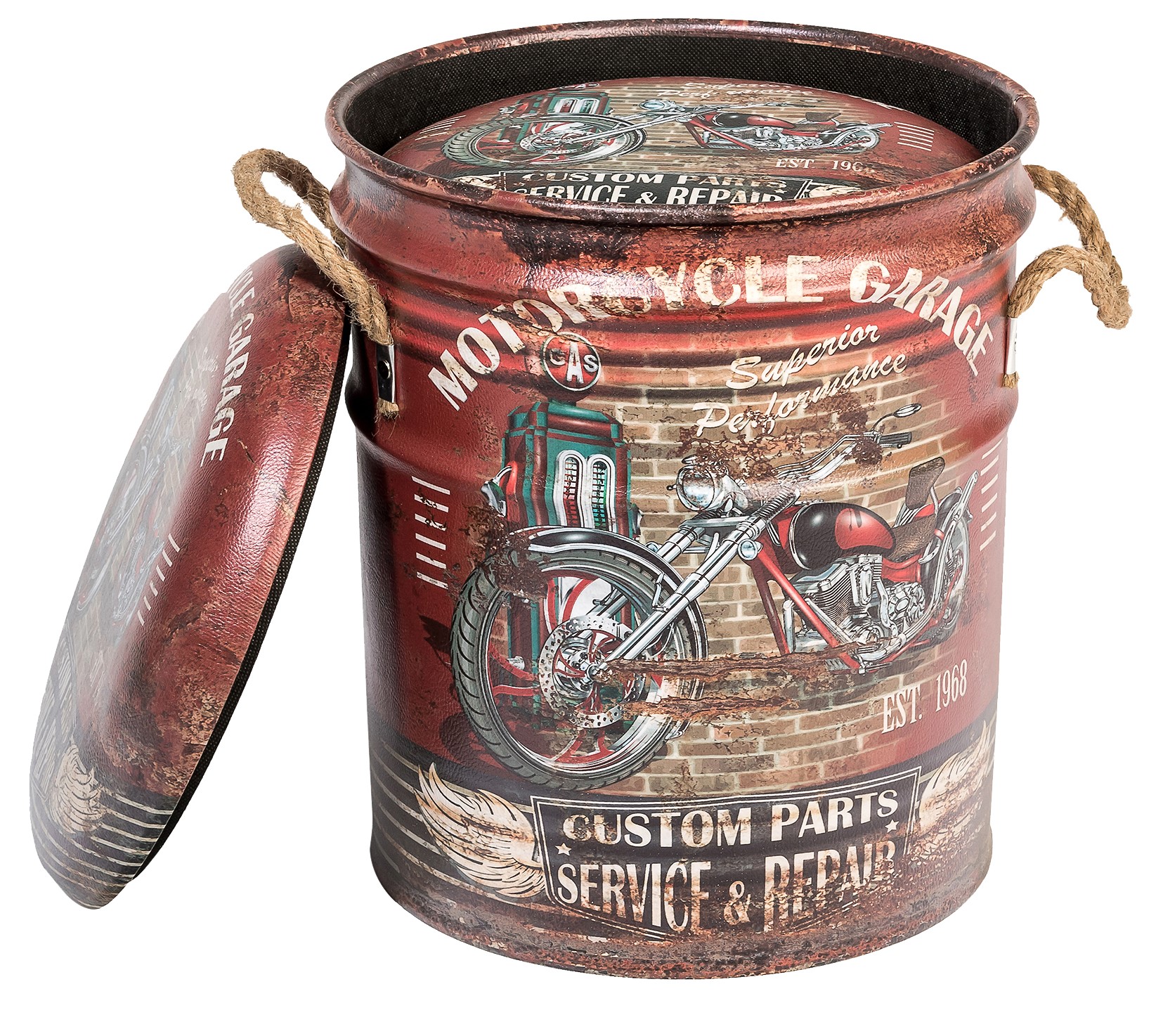 ОписаниеОбивка пуфа — экокожа. Под сидением находится вместительный внутренний ящик. Пуфик оснащен ручками из пеньковой веревки.