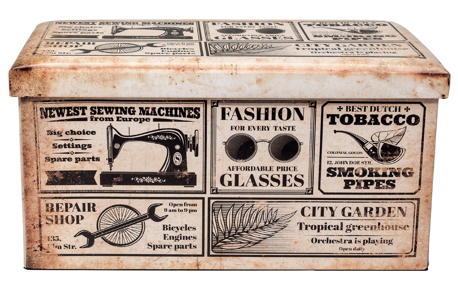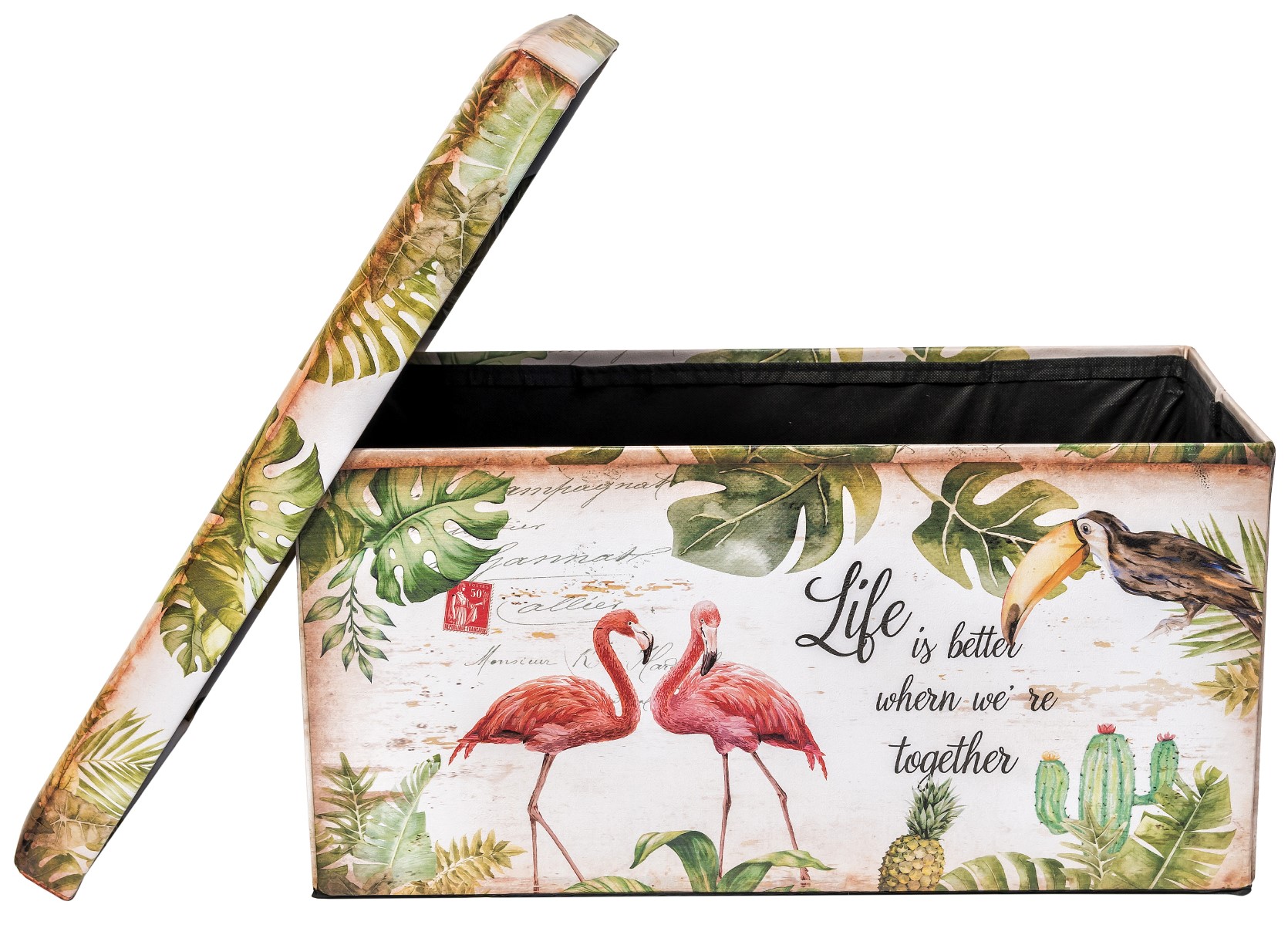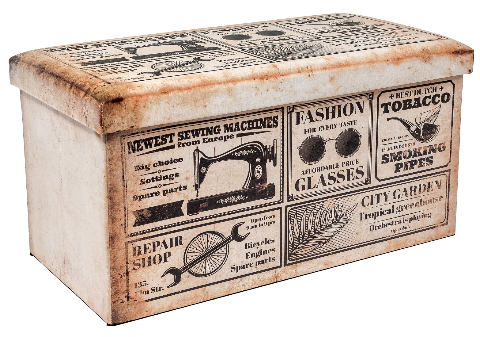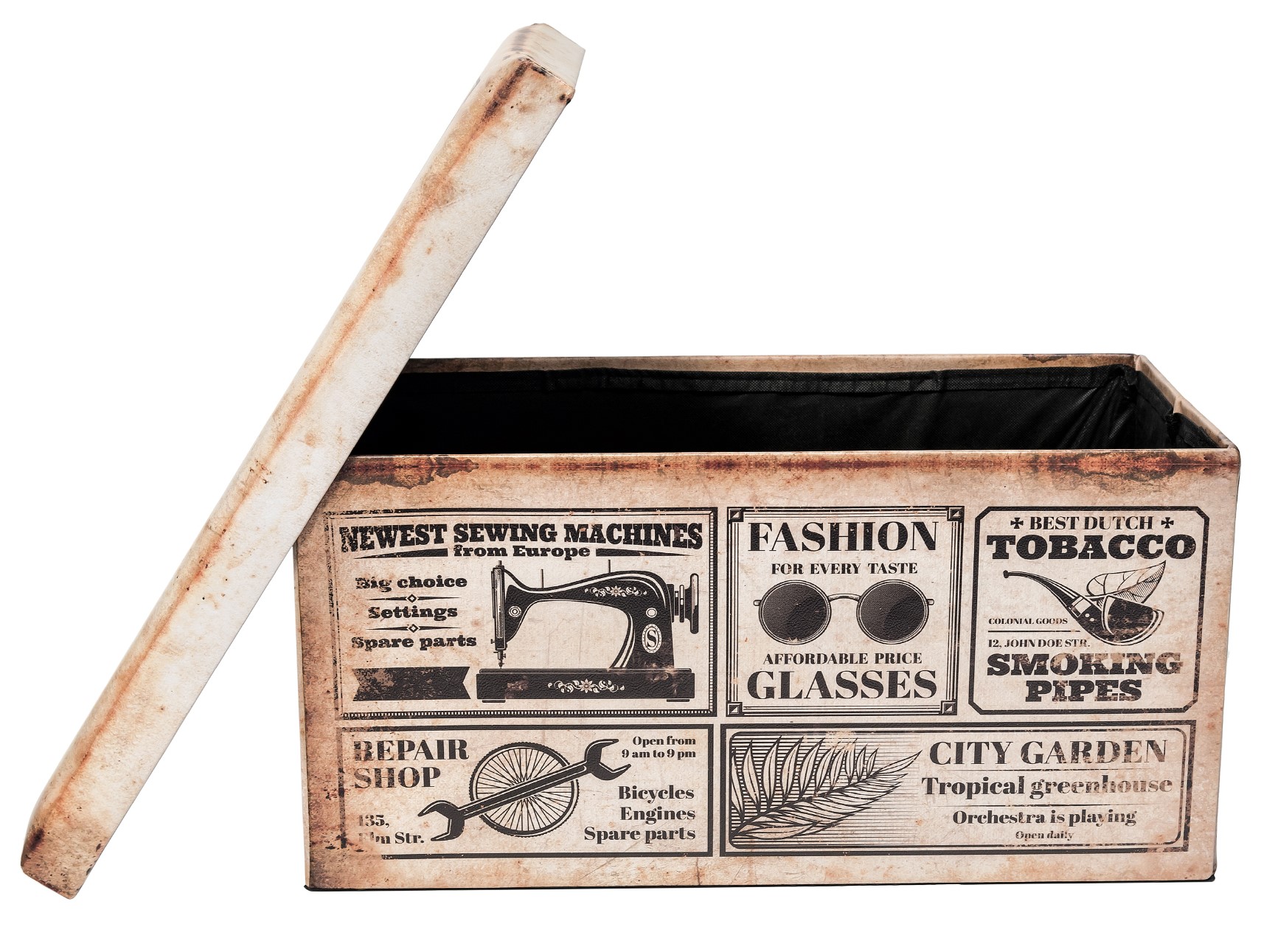 ОписаниеОбивка пуфа — экокожа. Под сидением находится вместительный внутренний ящик.