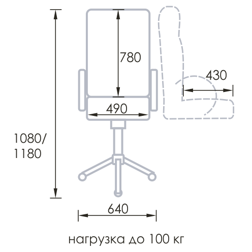 • Высота кресла (H): 1080-1180 мм.