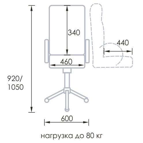 - Высота кресла (H): 920-1050 мм.