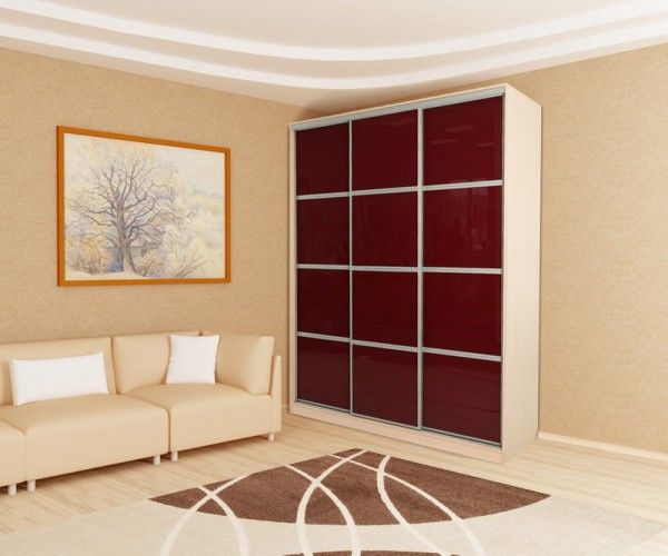 Фасады дверей выполнены: из стекла с эмалевым покрытием глубокого «бордового», спокойного «кремового» или насыщенного «коричневого» цвета.