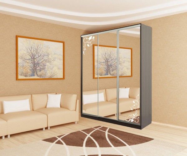 Фасады дверей выполнены: из зеркал с матированным рисунком «Цветы».