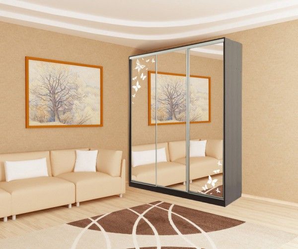 Фасады дверей выполнены: из зеркал с матированным рисунком «Бабочка».