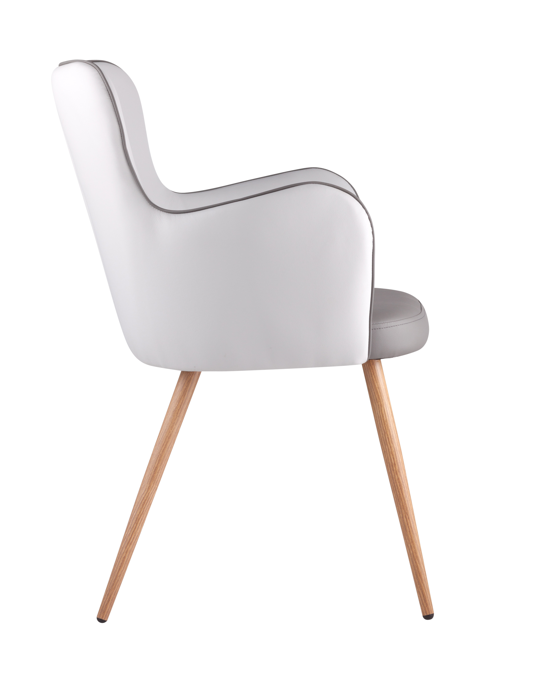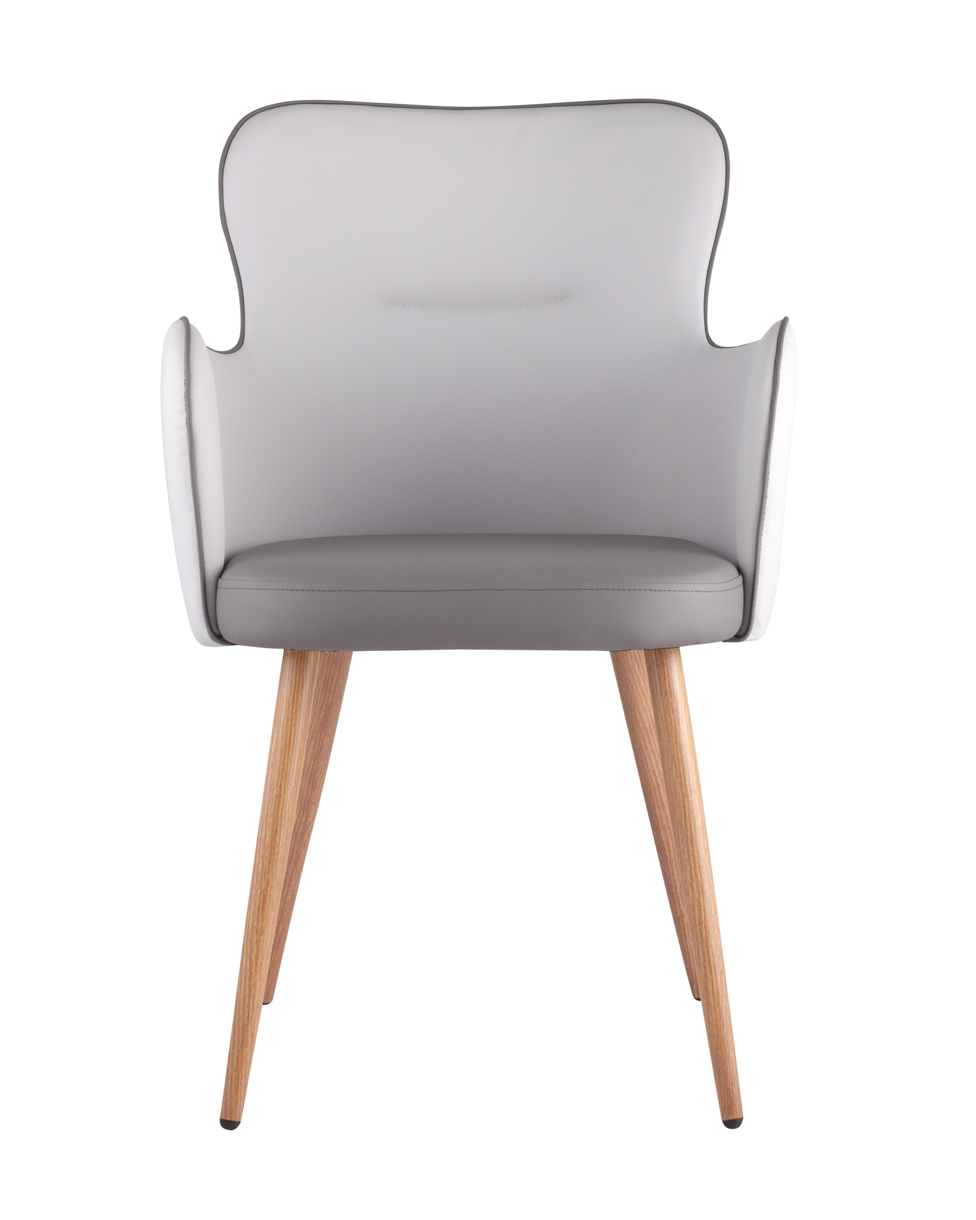 ОписаниеСтильный и мягкий стул имеет широкую эргономичную спинку и удобные подлокотники. Обивкой послужила высококачественная PU кожа. Ножки стальные с принтом под дерево.