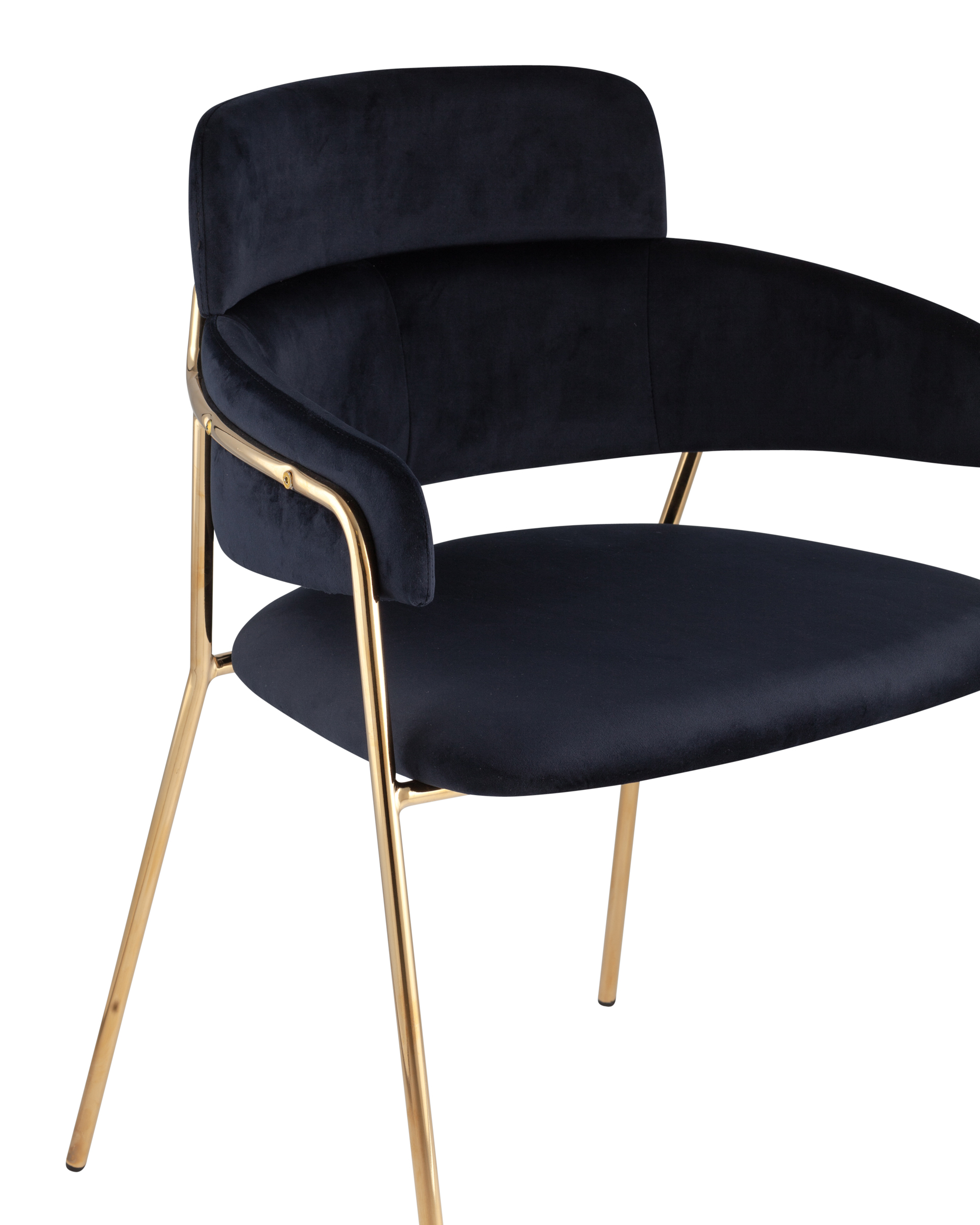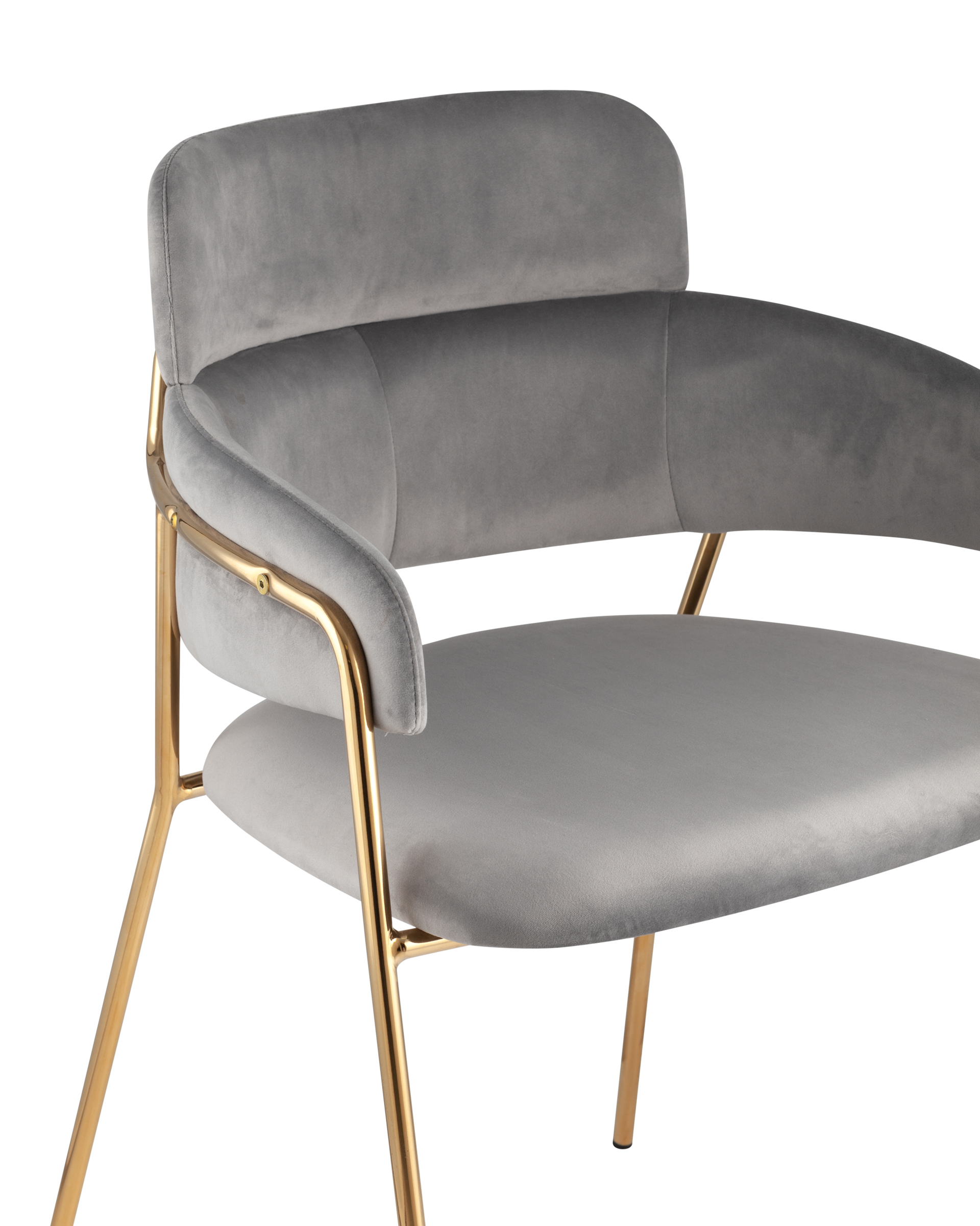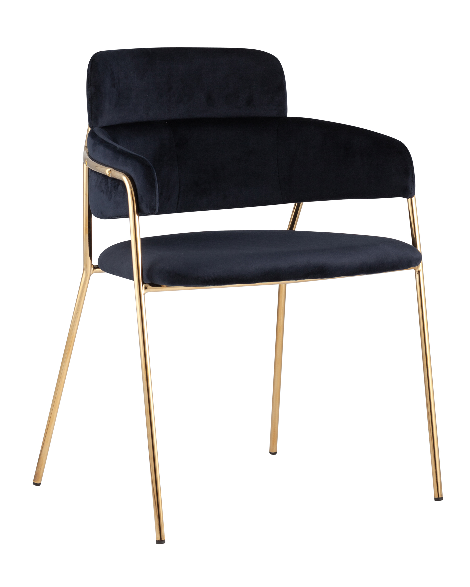 ОписаниеСтильный стул с оригинальной спинкой и подлокотниками. В качестве обивки используется мягкий вельвет. Металлический каркас золотого цвета огибает спинку и выступает аккуратным акцентом модели. Широкое сиденье обеспечивает удобную посадку.
