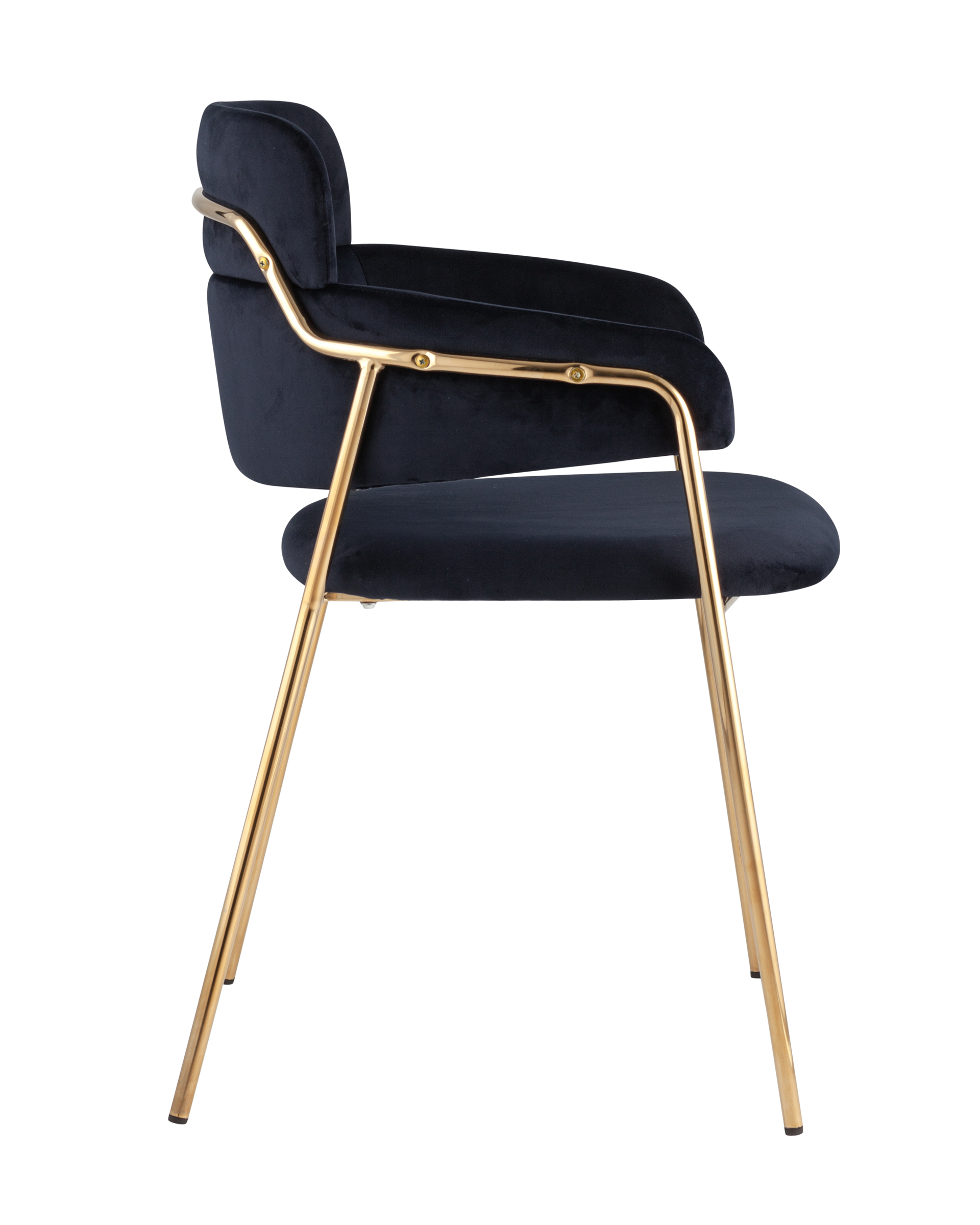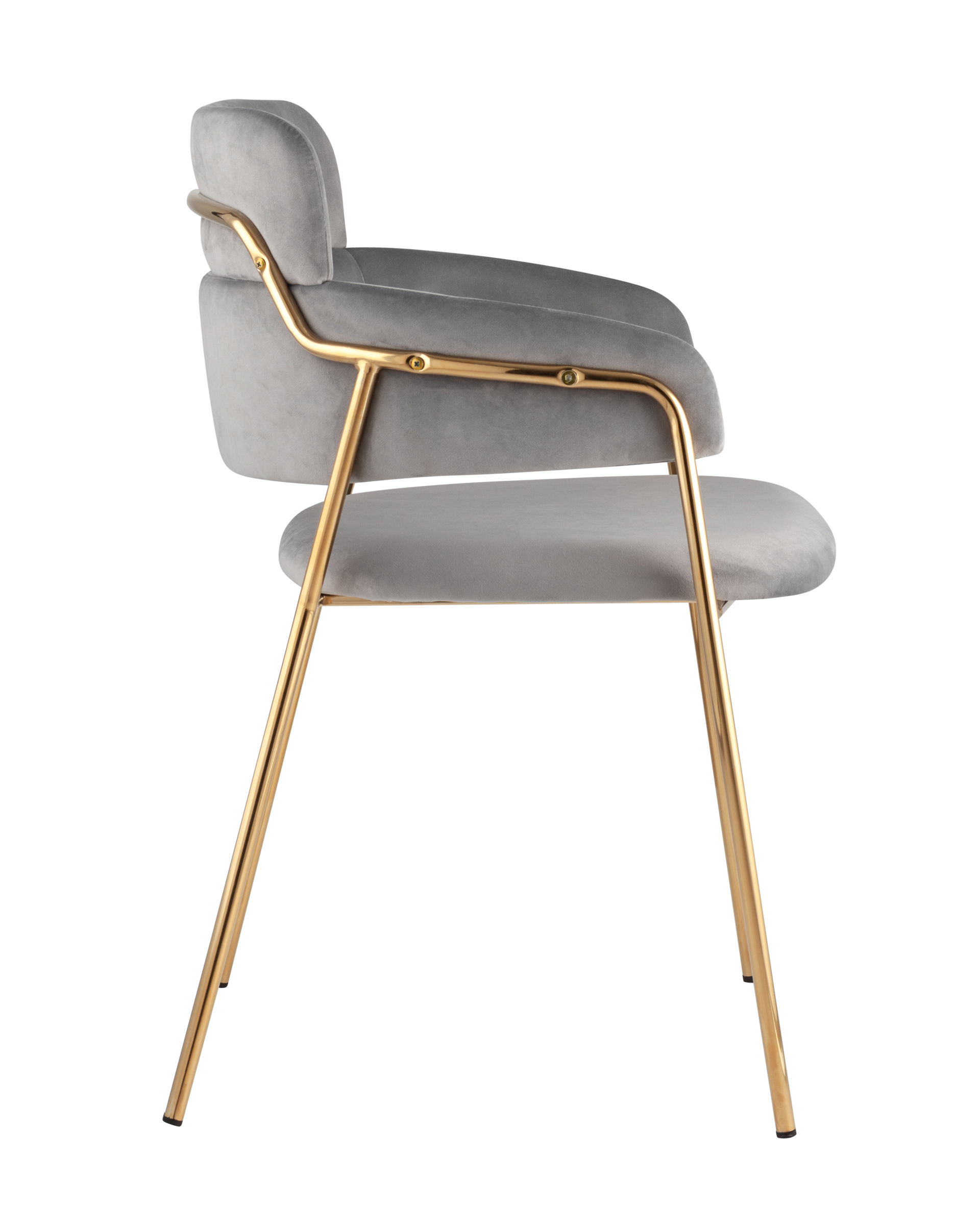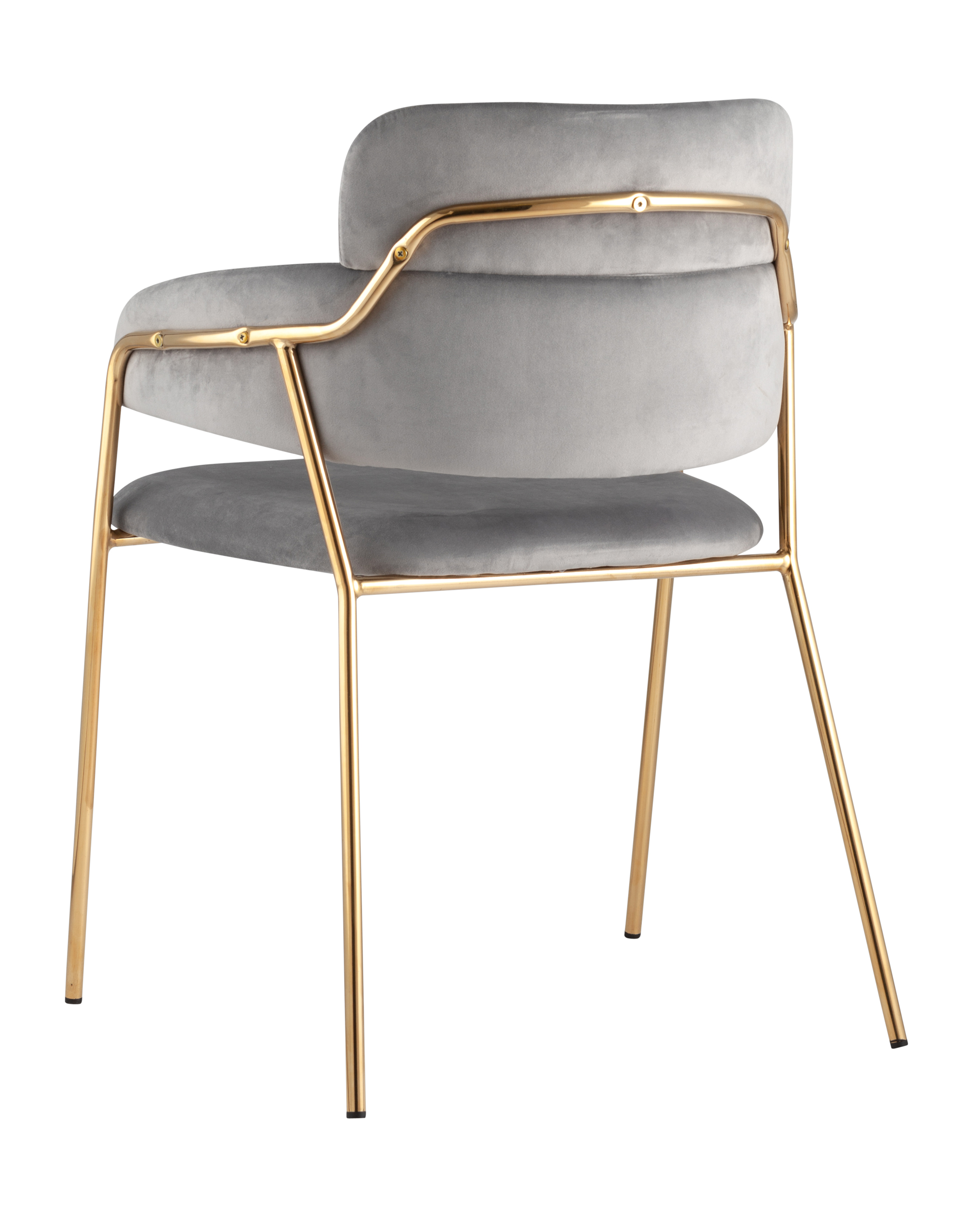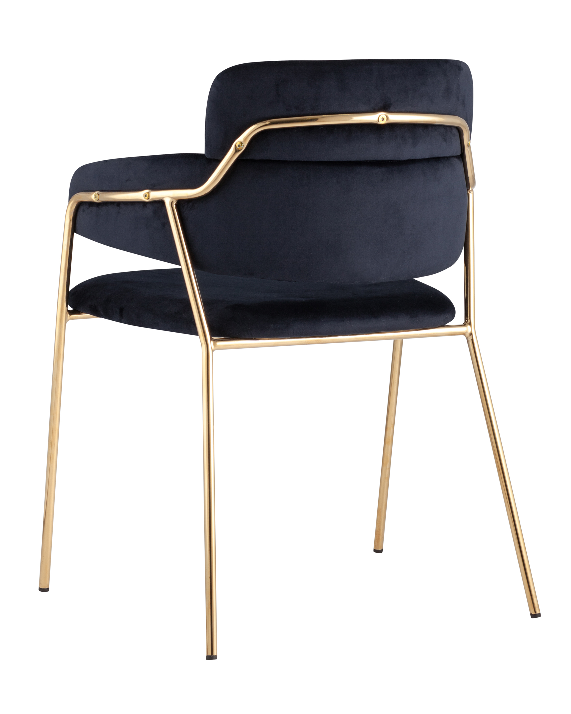 ОписаниеСтильный стул с оригинальной спинкой и подлокотниками. В качестве обивки используется мягкий вельвет. Металлический каркас золотого цвета огибает спинку и выступает аккуратным акцентом модели. Широкое сиденье обеспечивает удобную посадку.