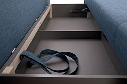 В связи с крупными габаритами и увеличенным объемом ППУ диван оснащен вспомогательной петлей для подъема платформы при складывании.