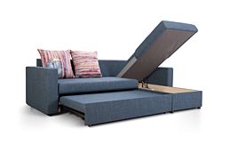 ОписаниеПрактичный угловой диван Орион с бельевым ящиком и механизмом трансформации на каждый день. За счёт съемных подушек имеет широкую спальную поверхность в разложенном виде. Функция смены угла окажется полезной при перестановке или переезде в другую квартиру. Основание – ортопедические латы.