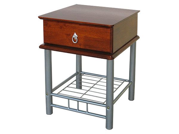 Тумба прикроватная выполнена из натурального дерева (массив гевеи) и металлической трубы.