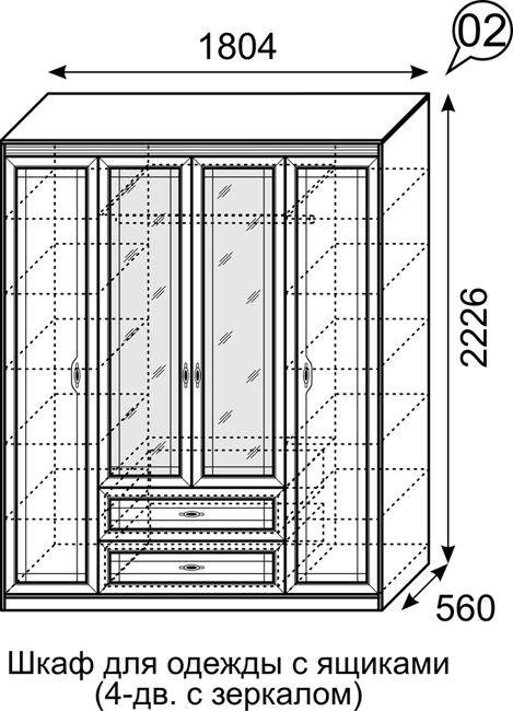 -Шкаф для одежды 4-х дверный с ящиками мод.2 Лондон