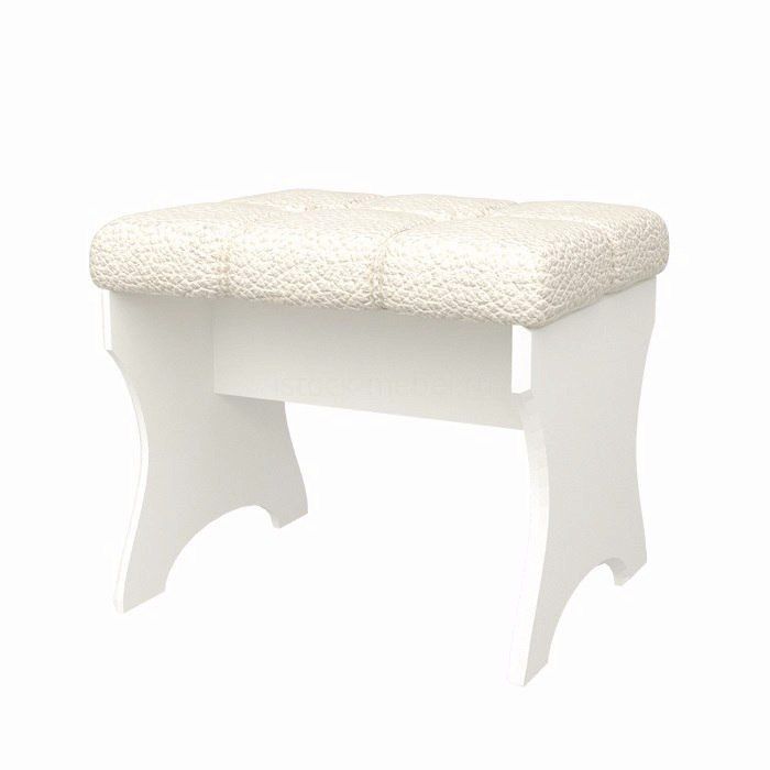 Изящный небольшой пуфик в светлом исполнении добавит уютных ноток в детскую, спальню или в гостиную. Боковины модели оформлены изящными изгибами. Элегантное дополнение к туалетному столику.