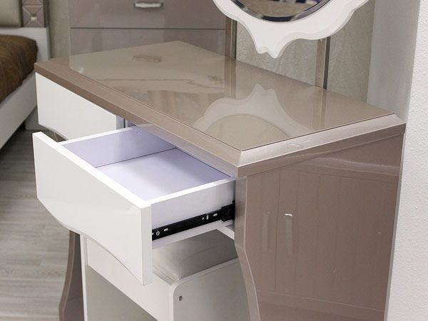Гламурный туалетный столик из МДФ с многослойным глянцевым покрытием.