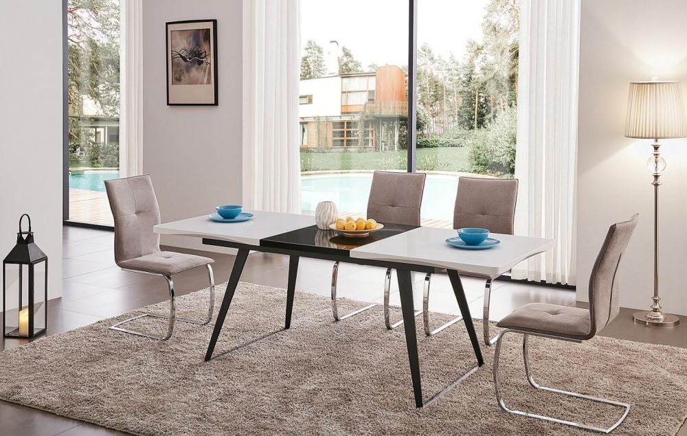 Cтол-трансформер DT-93 белый, Обеденный стол - трансформер на оригинальных чёрных ножках. Складная центральная секция позволяет трансформировать столешницу легко и быстро.