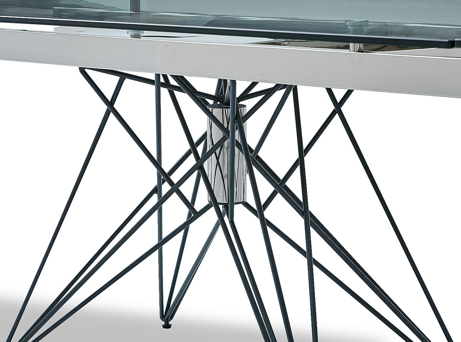 ОписаниеCтол-трансформер T-041 (140) прозрачный, Сложносопряжённая металлическая нога держит столешницу из прочного закалённого стекла, которое гораздо сложнее разбить чем обычное. Но даже если оно бьётся, его осколки получаются неострыми, а значит неспособны причинить какой-либо вред живому существу. Две выдвижные боковые вставки легко и непринуждённо значительно увеличивают полезный объём стола.